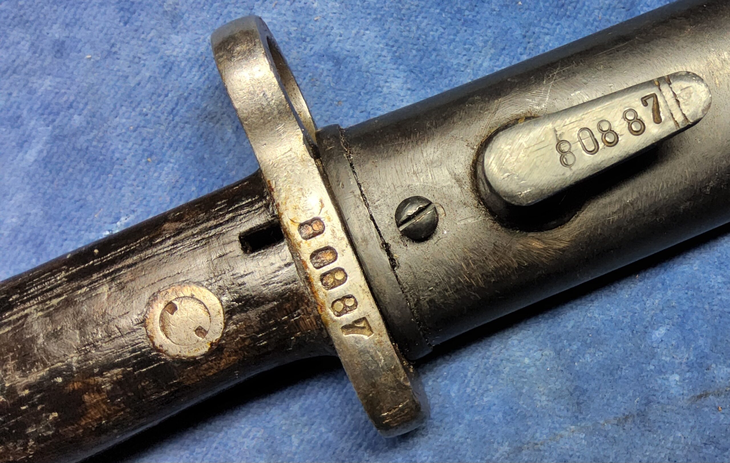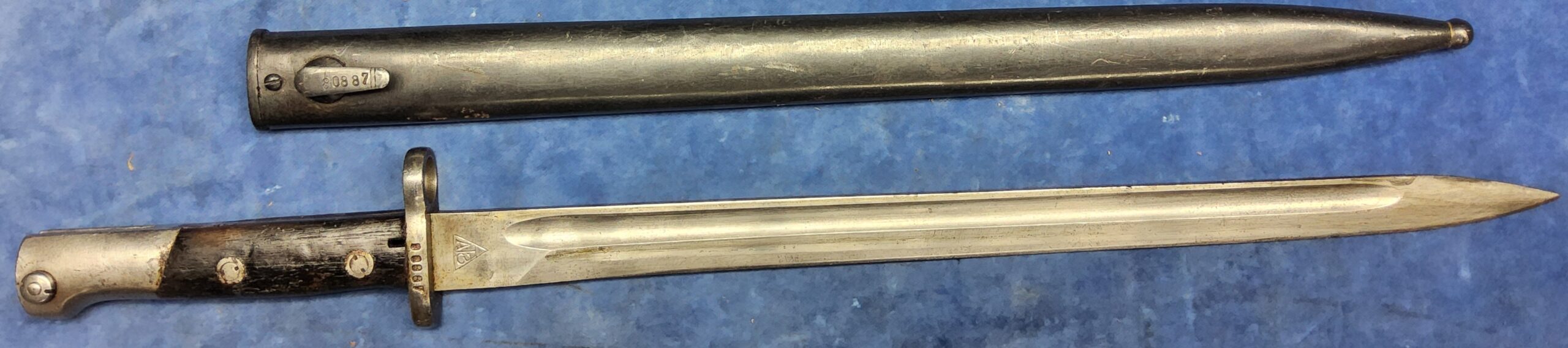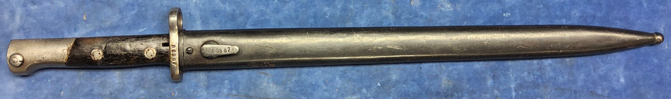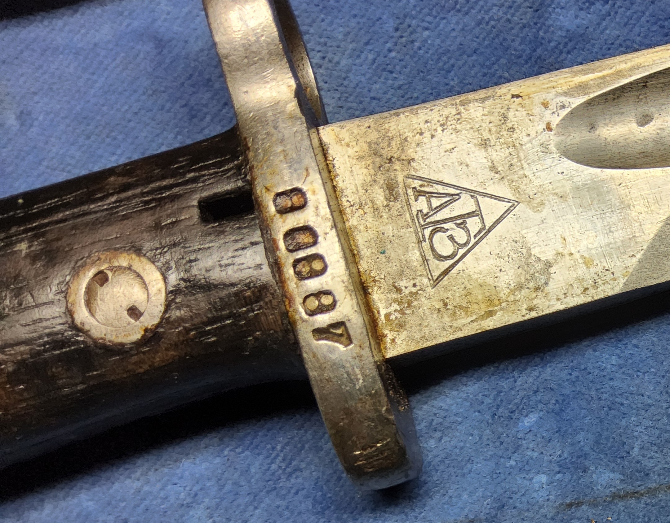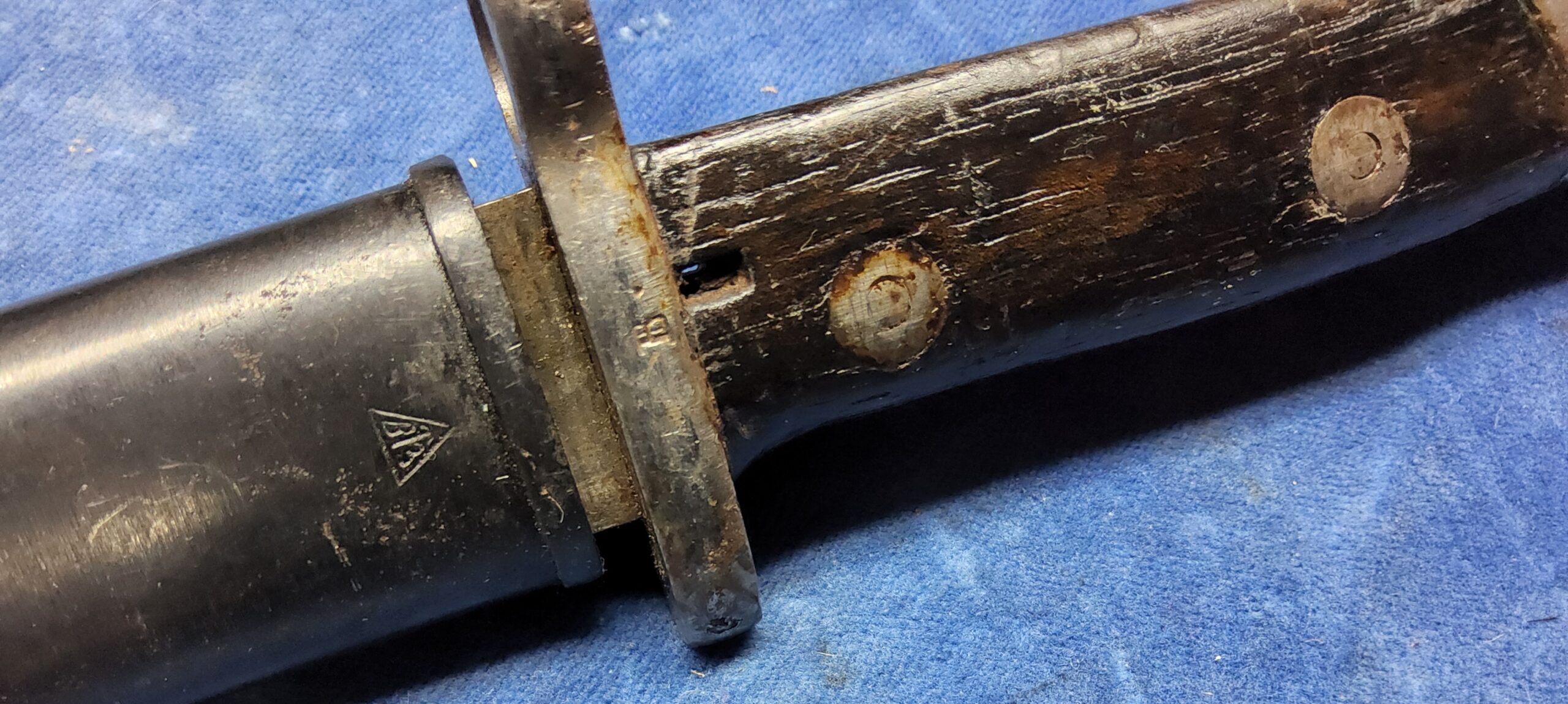 Bajonet voor het Yougoslavische Mauser VZ24 geweer. Met Yugo arsenaals markering AT3 (ATZ Artiljerijko Tehniki Zavod- Kragujevac. 1923-1931)