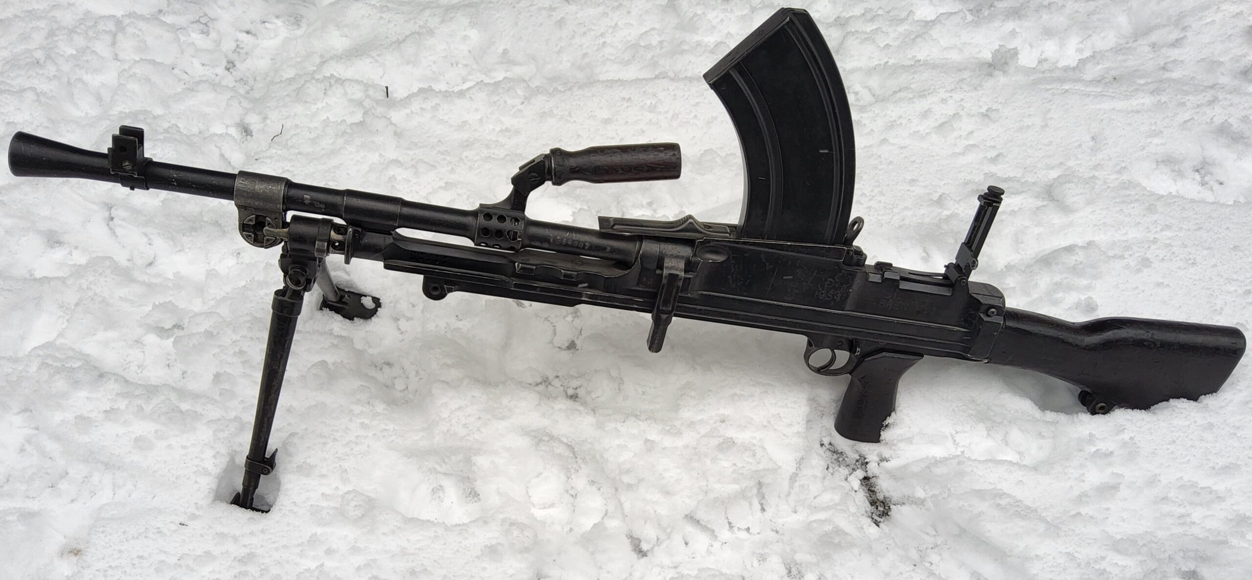 Te koop staat hier een hele nette Bren MK3. Keurige originele blauwing. Weinig sporen van het onklaar maken aan de buitenzijde. Span handle is beweegbaar, maar neemt de afsluiter niet mee. Onklaar gemaakt in Oostenrijk.