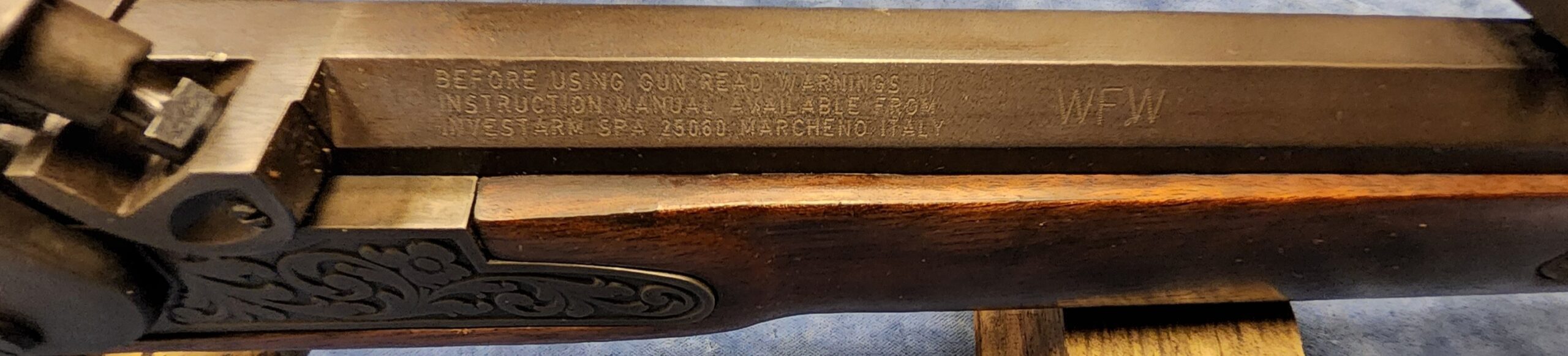 Keurige Italiaanse replica van een antiek voorlaad geweer in kaliber .45 BP