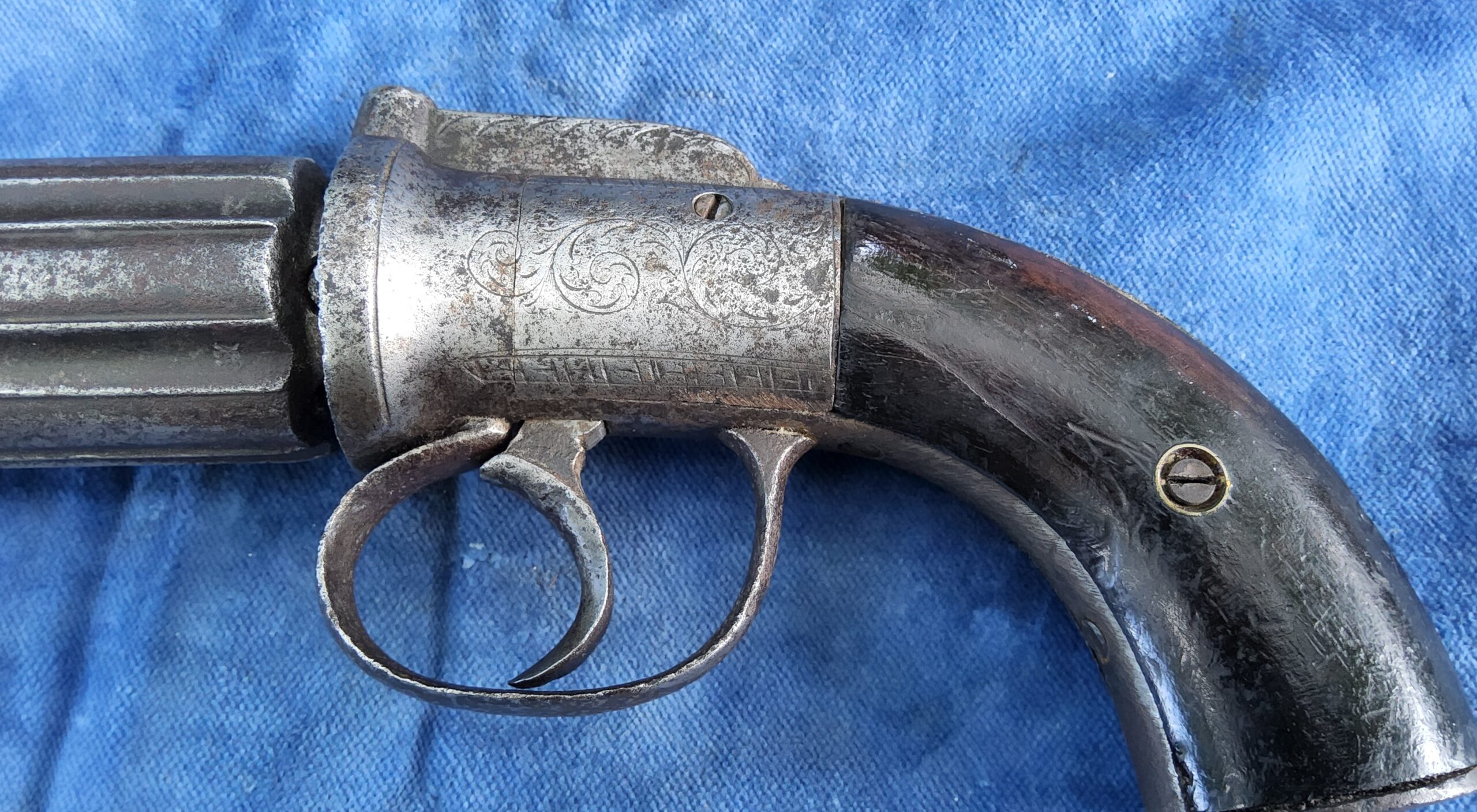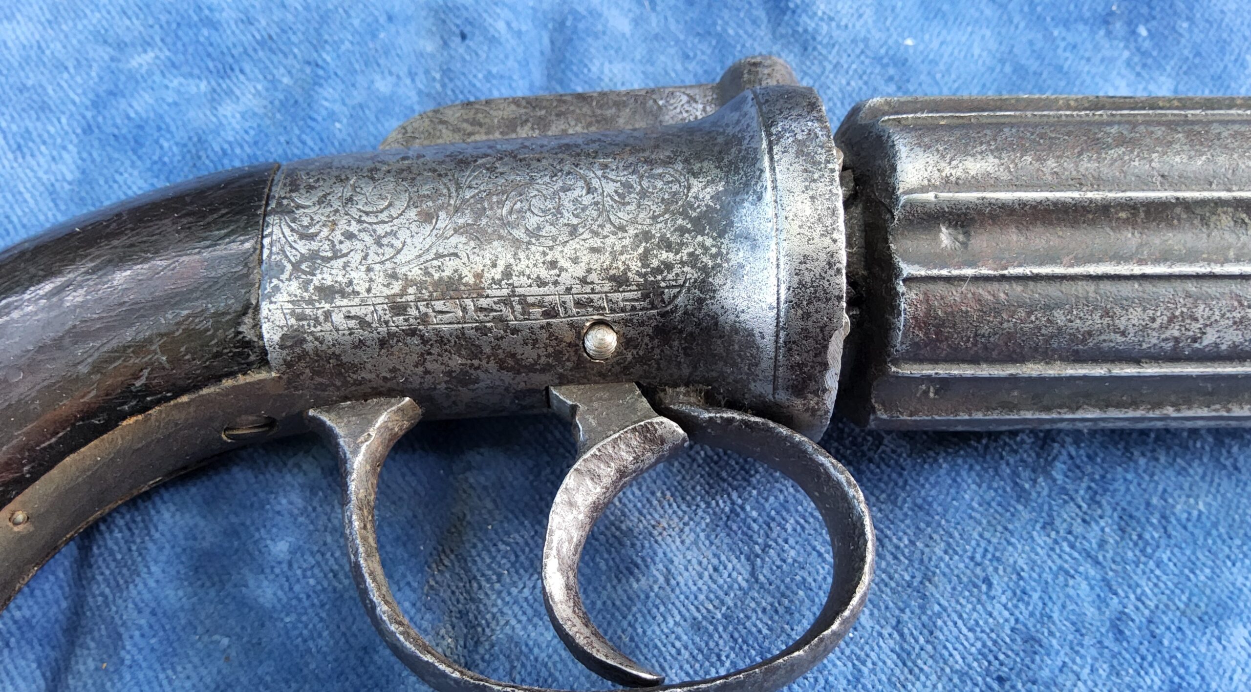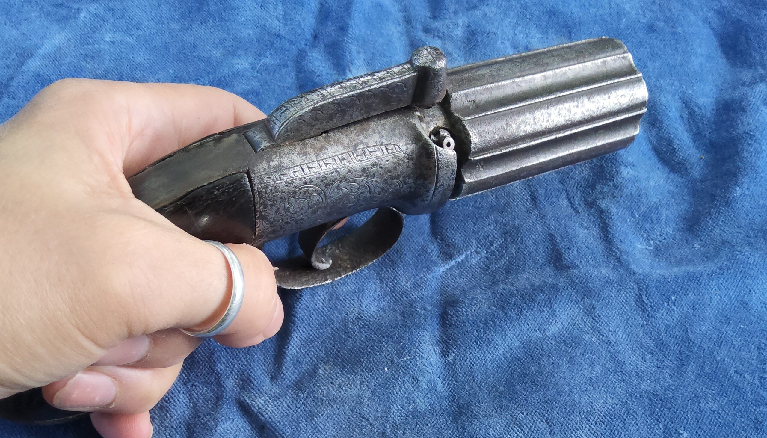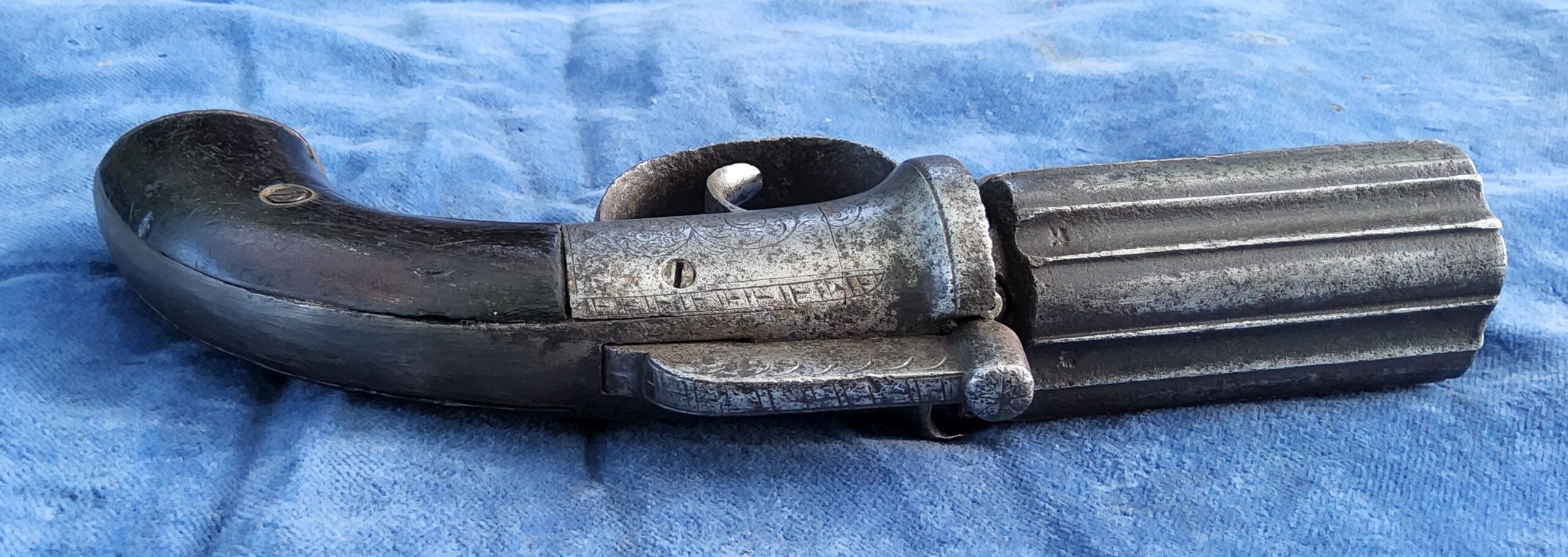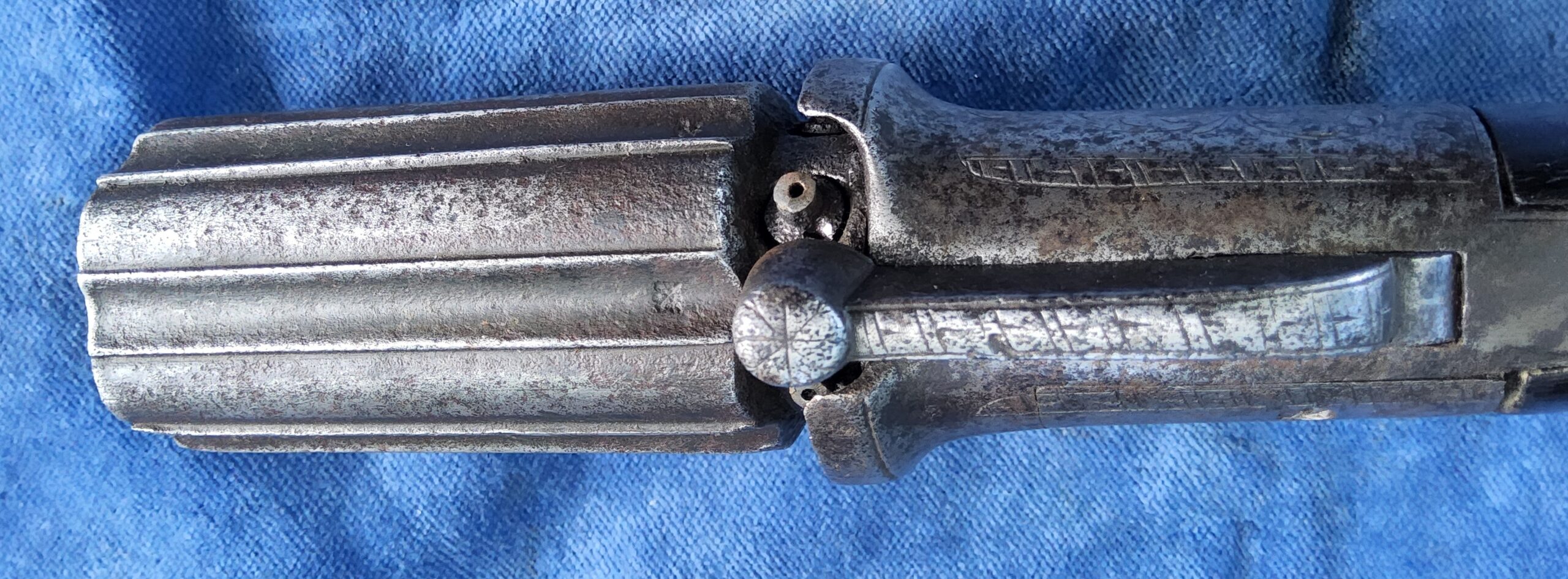 Te koop staat hier een aardige originele 6 schots pepperbox in kaliber 10 mm percussie.