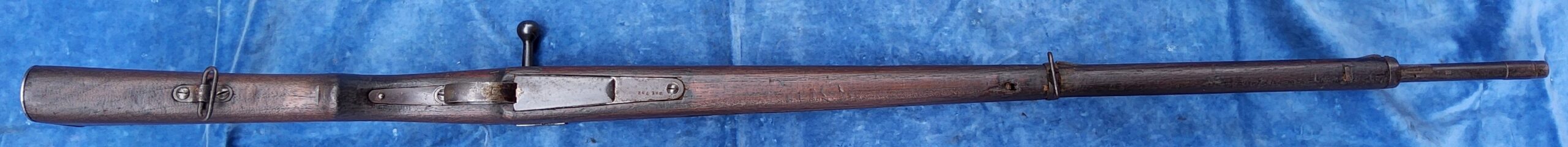 Dit wapen heeft een fraai patina vanwege zijn langdurige inzet, is nooit gereviseerd geweest, en bezit nog de originele beweegbare stofkap (dust cover) die over de grendel geschoven kan worden. Het bovenhout heeft een scheurtje, dat desgewenst gemakkelijk en onzichtbaar met een 2-componenten lijm gerepareerd kan worden. Geen pompstok.